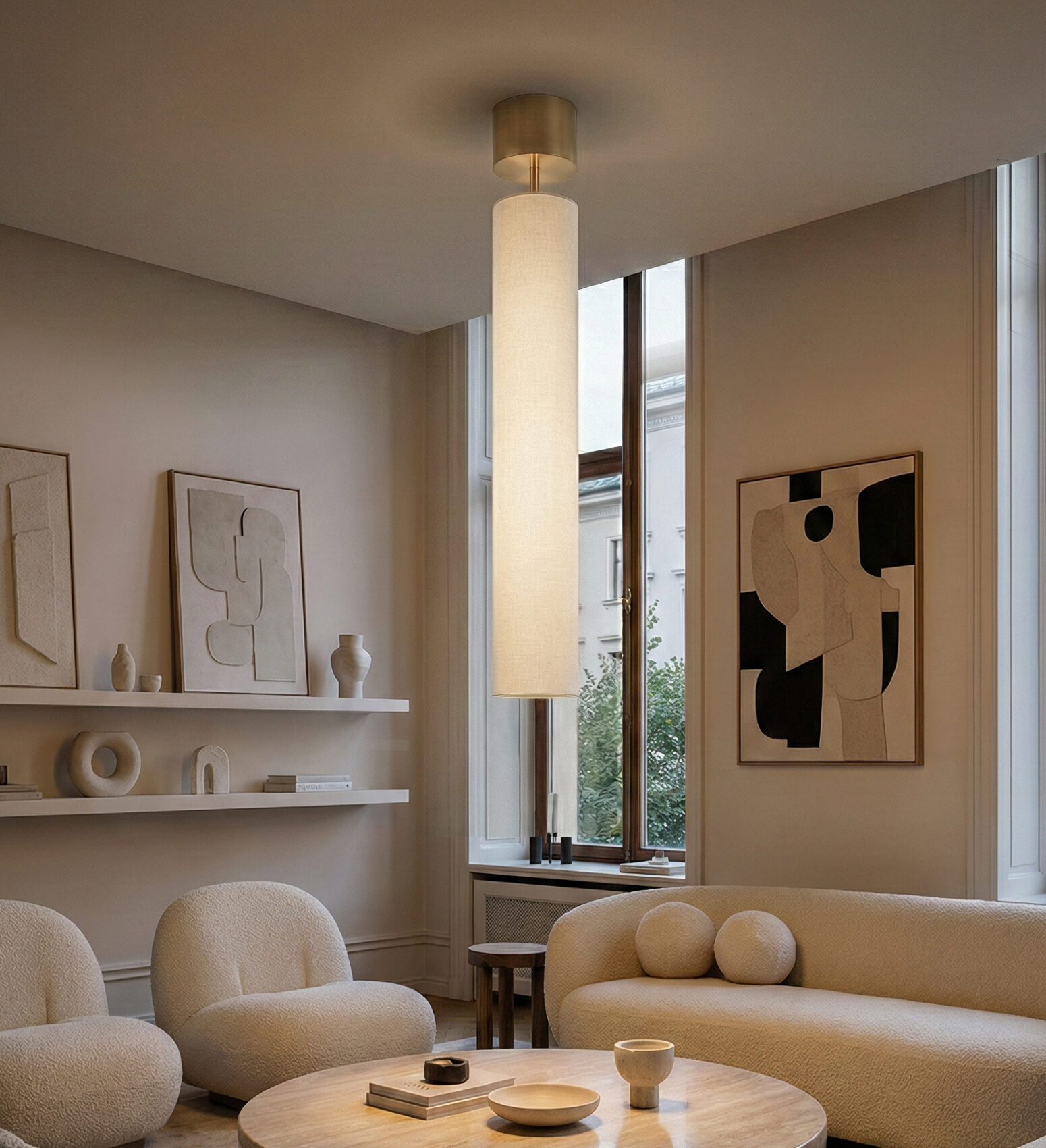 Les Clopes se compose de lampadaires, lampes à poser et suspensions. Leur nom transgressif mais souriant, emblématique de l’esprit d’un créateur jonglant habilement entre les références à la culture populaire et celles de l’excellence, provient de leur longue forme élancée en tube. Pour leur pied, José imagine une finition en métal laqué blanc ou noir, en variante au laiton satiné. Et puis, en écho à sa fascination pour les métiers d’art japonais, celui-ci développe le bois brûlé ou toasté, une technique inédite que la manufacture a dû intégrer à sa palette de pratiques. La sensorialité d’une telle matière se fond harmonieusement avec celle des abat-jours en lin.