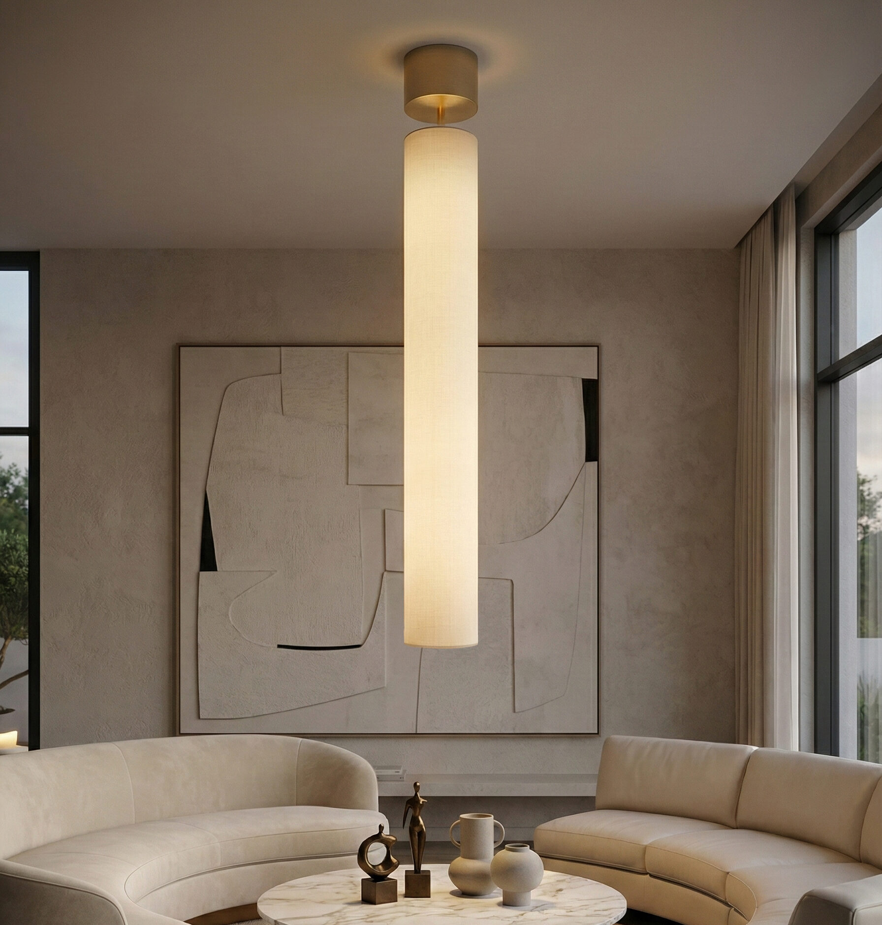 Les Clopes se compose de lampadaires, lampes à poser et suspensions. Leur nom transgressif mais souriant, emblématique de l’esprit d’un créateur jonglant habilement entre les références à la culture populaire et celles de l’excellence, provient de leur longue forme élancée en tube. Pour leur pied, José imagine une finition en métal laqué blanc ou noir, en variante au laiton satiné. Et puis, en écho à sa fascination pour les métiers d’art japonais, celui-ci développe le bois brûlé ou toasté, une technique inédite que la manufacture a dû intégrer à sa palette de pratiques. La sensorialité d’une telle matière se fond harmonieusement avec celle des abat-jours en lin.
