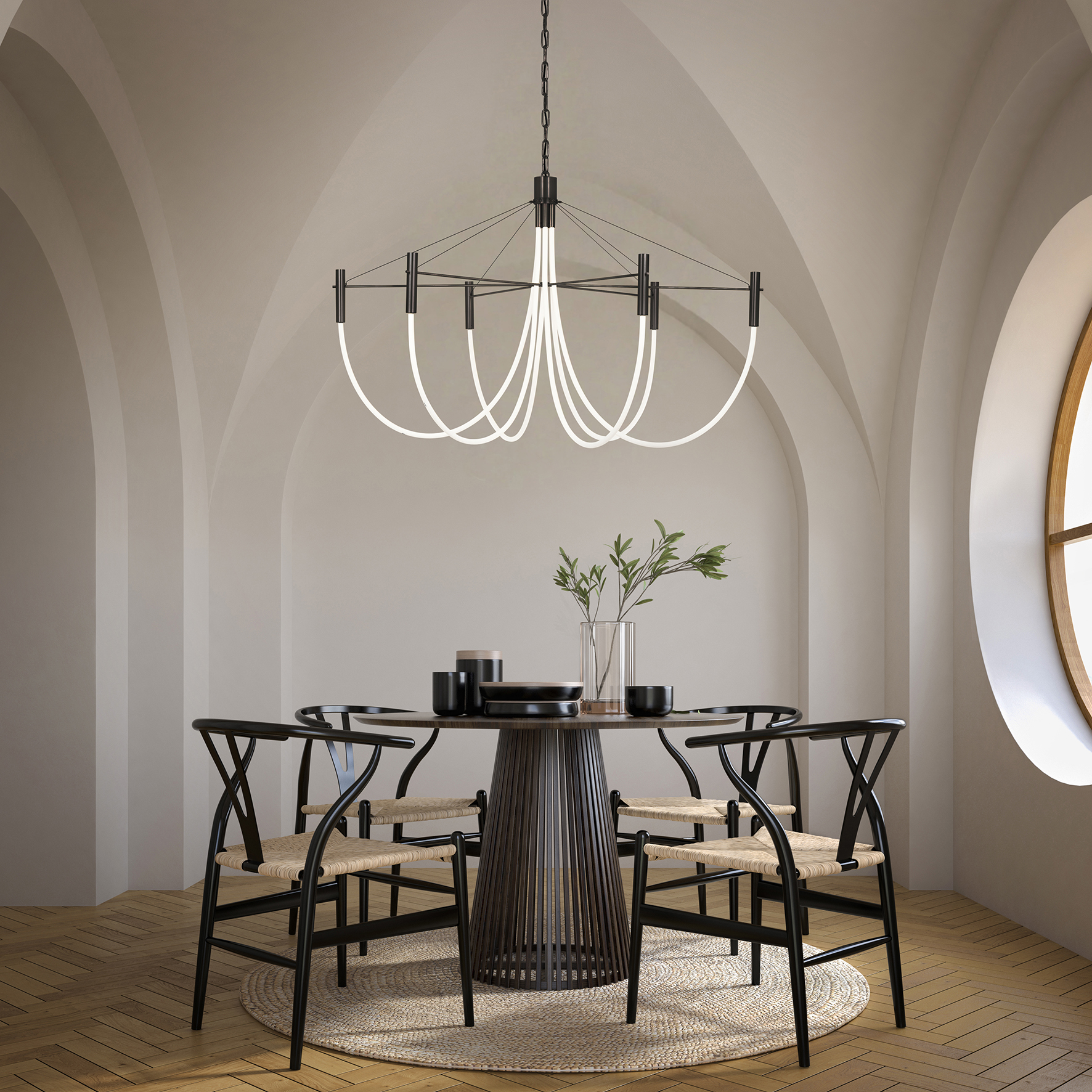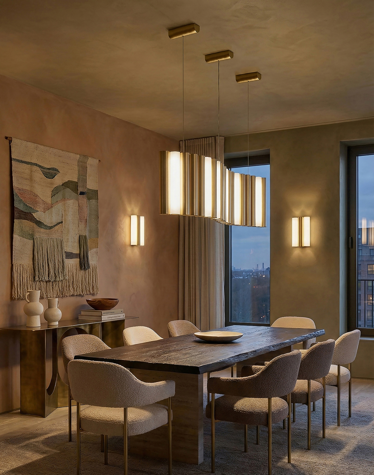 Les Clopes se compose de lampadaires, lampes à poser et suspensions. Leur nom transgressif mais souriant, emblématique de l’esprit d’un créateur jonglant habilement entre les références à la culture populaire et celles de l’excellence, provient de leur longue forme élancée en tube. Pour leur pied, José imagine une finition en métal laqué blanc ou noir, en variante au laiton satiné. Et puis, en écho à sa fascination pour les métiers d’art japonais, celui-ci développe le bois brûlé ou toasté, une technique inédite que la manufacture a dû intégrer à sa palette de pratiques. La sensorialité d’une telle matière se fond harmonieusement avec celle des abat-jours en lin.